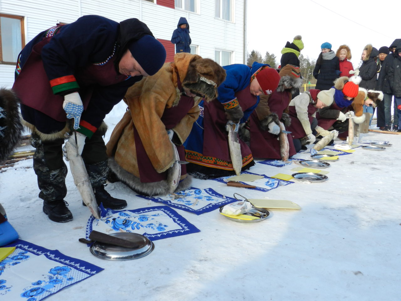 - Хозяйки чума соревновались в разделке рыбы. Затем по условиям конкурса нужно было приготовить из нее наваристую уху.