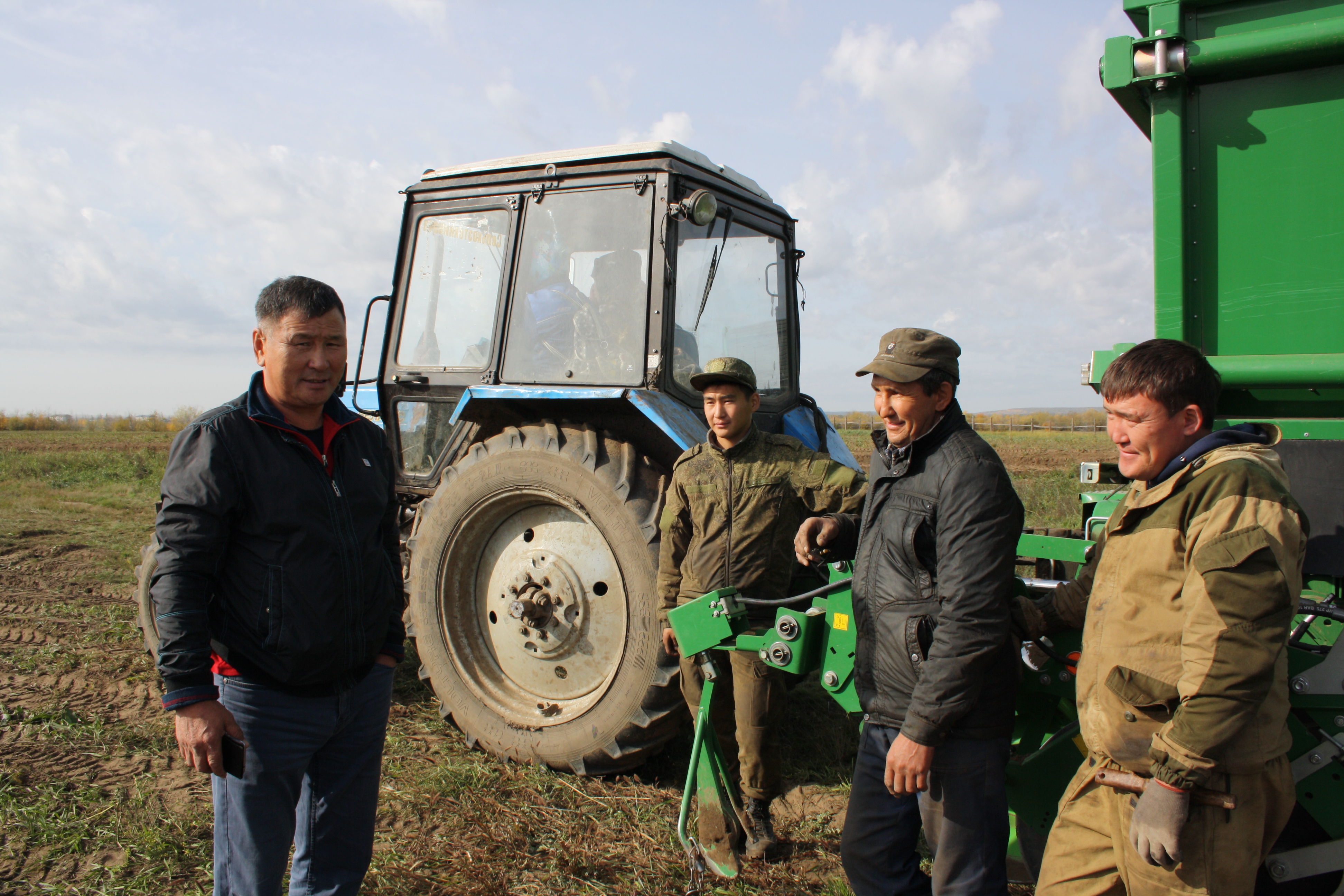 Мы подошли в незапланированный перерыв. Трактористы и рабочие устроили небольшой перекур — ждут подвоза закончившейся солярки. Рядом бродит стадо. Животные так и норовят похулиганить — забраться на ровные, как линейка, гряды. «А ну пошли вон отсюда!» — машут на них руками бригадир Роман Соломонов и тракторист Афанасий Тимофеев.