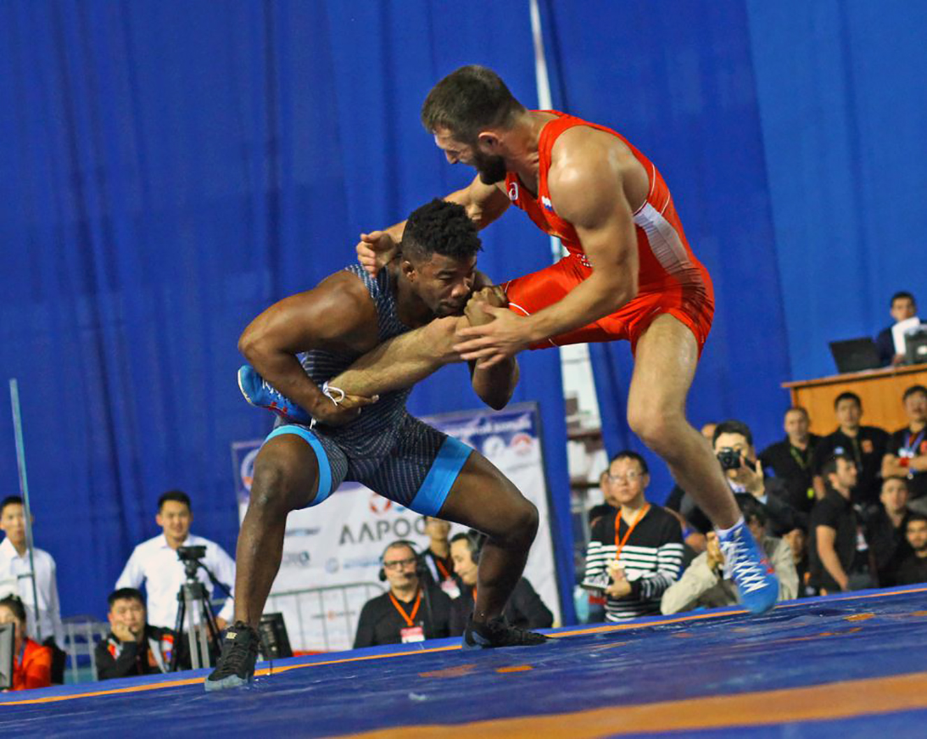 Однако в стартовой схватке с Ахмедом Усмановым титулованный борец удивил, даже не пытаясь провести хоть один бросок со стойки. Тогда он победил в академическом стиле — 8:3. Его непривычно спокойную борьбу можно объяснить тем, что оба борца тренируются у Гайдара Гайдарова, и для них это скорее был тренировочный спарринг.